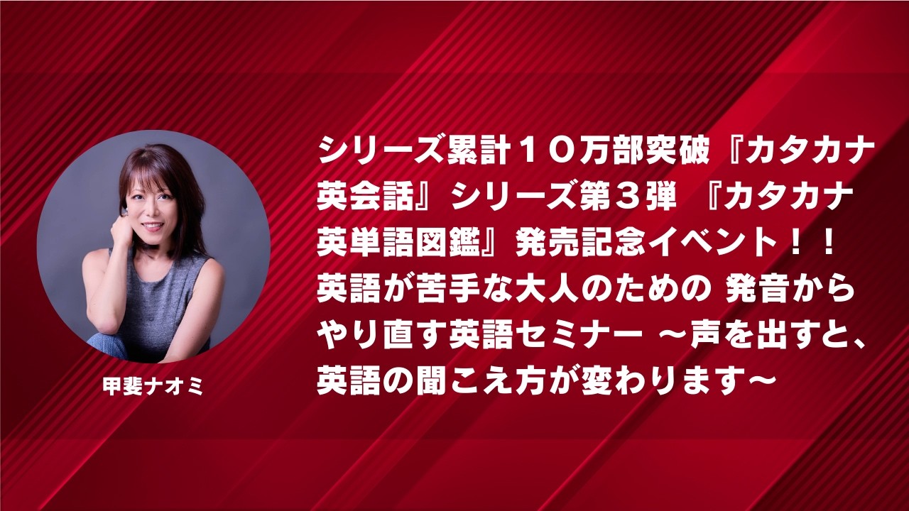 1:20:22 NEWシリーズ累計10万部突破『カタカナ英会話』シリーズ第3弾 『カタカナ英単語図鑑』発売記念イベント!! 英語が苦手な大人のための 発音からやり直す英語セミナー ~声を出すと、英語の聞こえ方が変わります~/甲斐ナオミ 甲斐ナオミ #カタカナ英会話 2026年02月26日