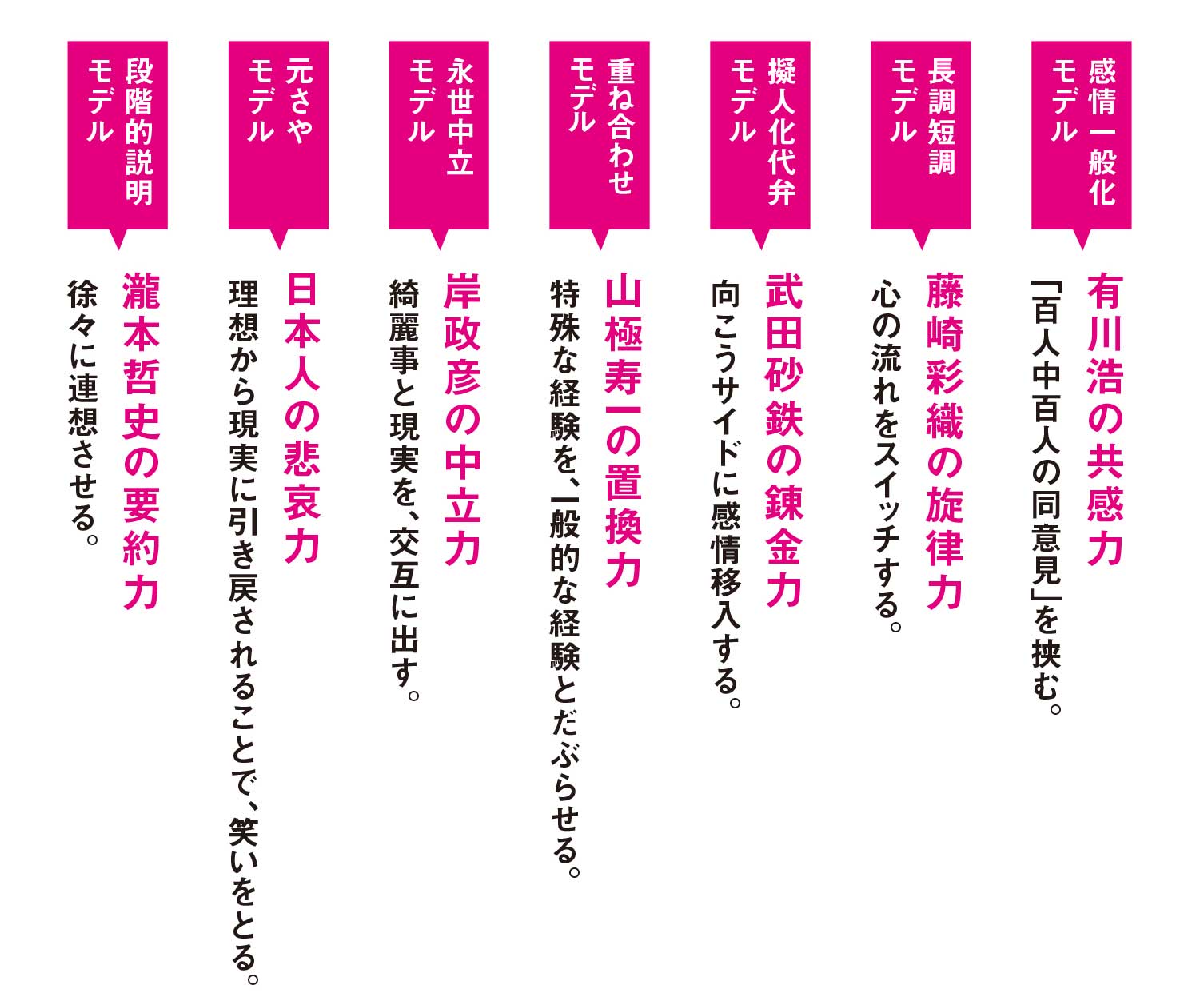 それぞれの文章のモデルに(ちょっと)変な名前がついていたり、比喩・メタファーが良い。