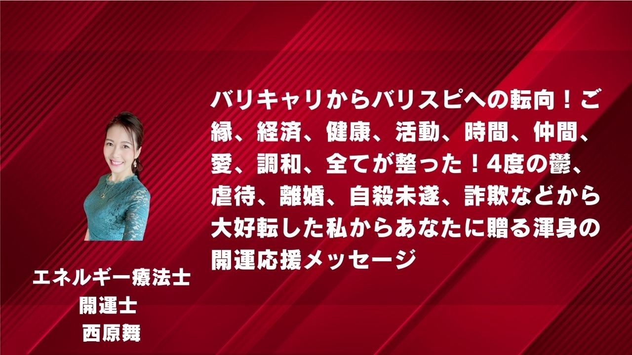 1:33:04 NEWバリキャリからバリスピへの転向!ご縁、経済、健康、活動、時間、仲間、愛、調和、全てが整った!4度の鬱、虐待、離婚、自殺未遂、詐欺などから大好転した私からあなたに贈る渾身の開運応援メッセージ/エネルギー療法士+開運士 西原舞 西原 舞 2026年03月18日